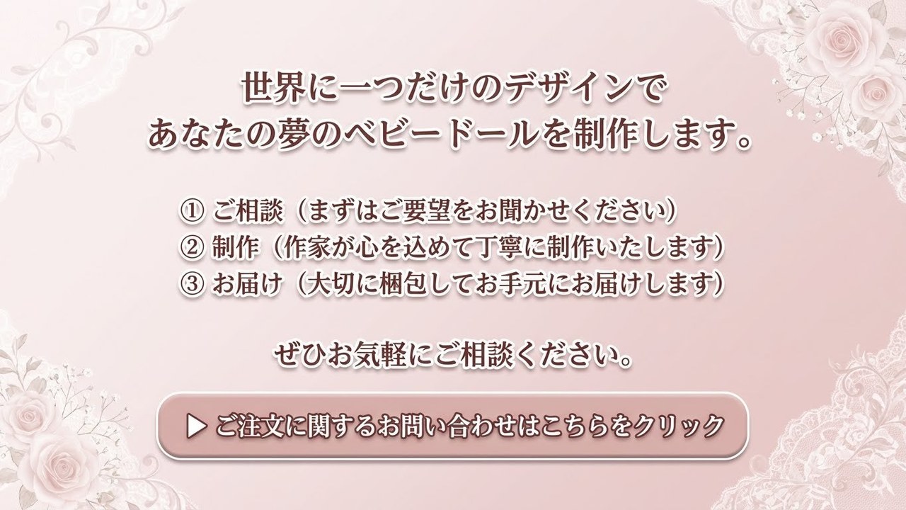 同じものは無い世界中でたった一つのオリジナルドールです。
